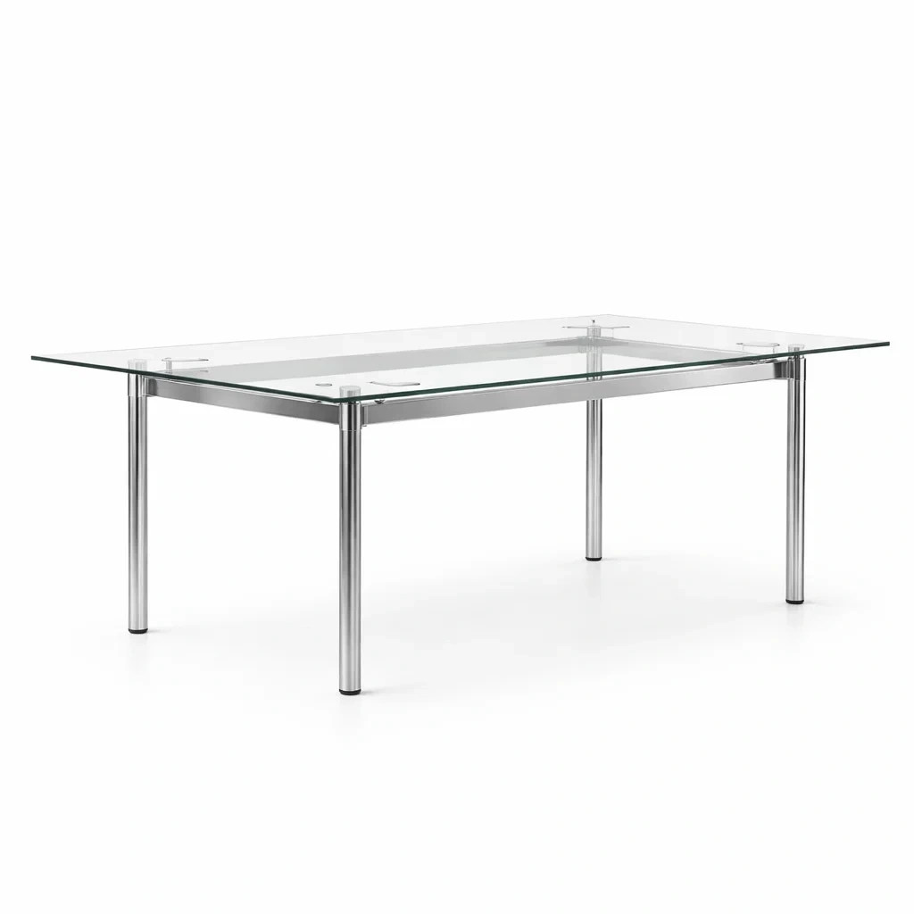 Tavolo da pranzo rettangolare in vetro temperato e acciaio cromato 160x90x75 cm