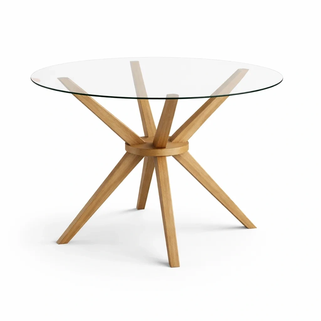 Tavolo da pranzo rotondo in vetro e legno di quercia