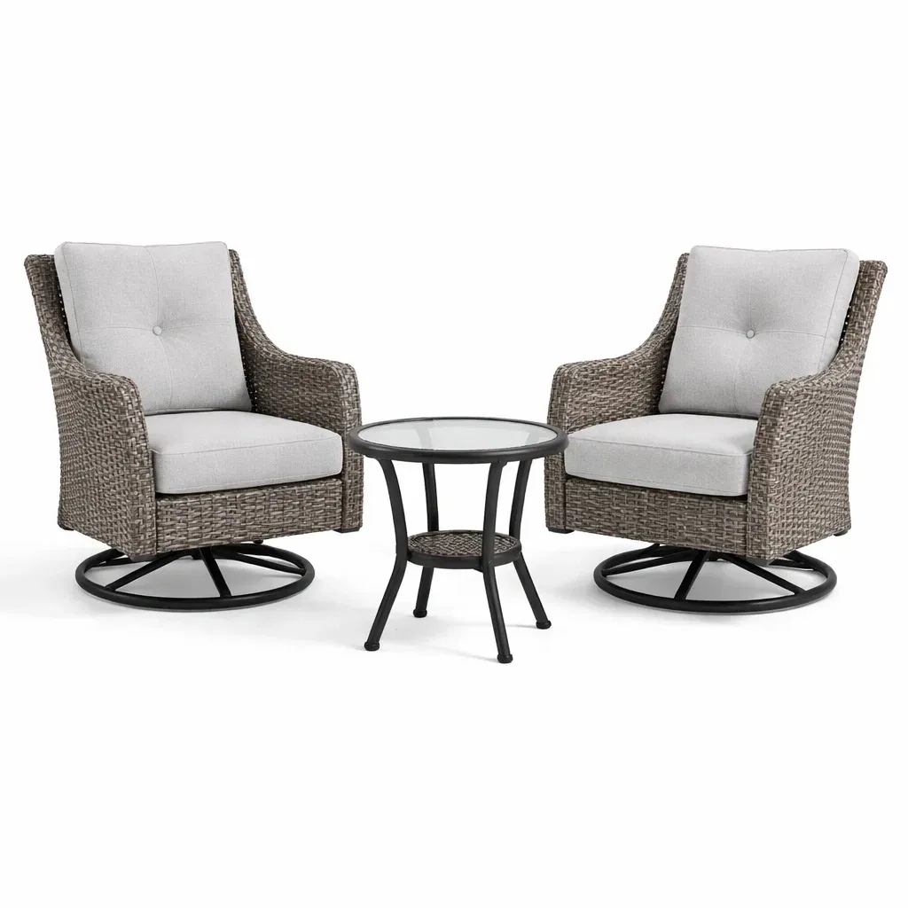 Set da relax piccolo con sedie in rattan e tavolo in vetro temperato