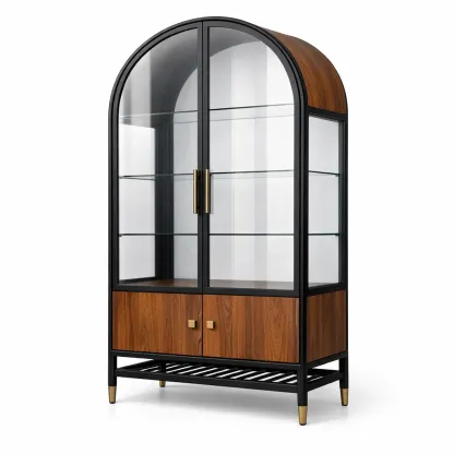Vetrina curvata in legno e vetro temperato con ripiani in metallo 180 cm